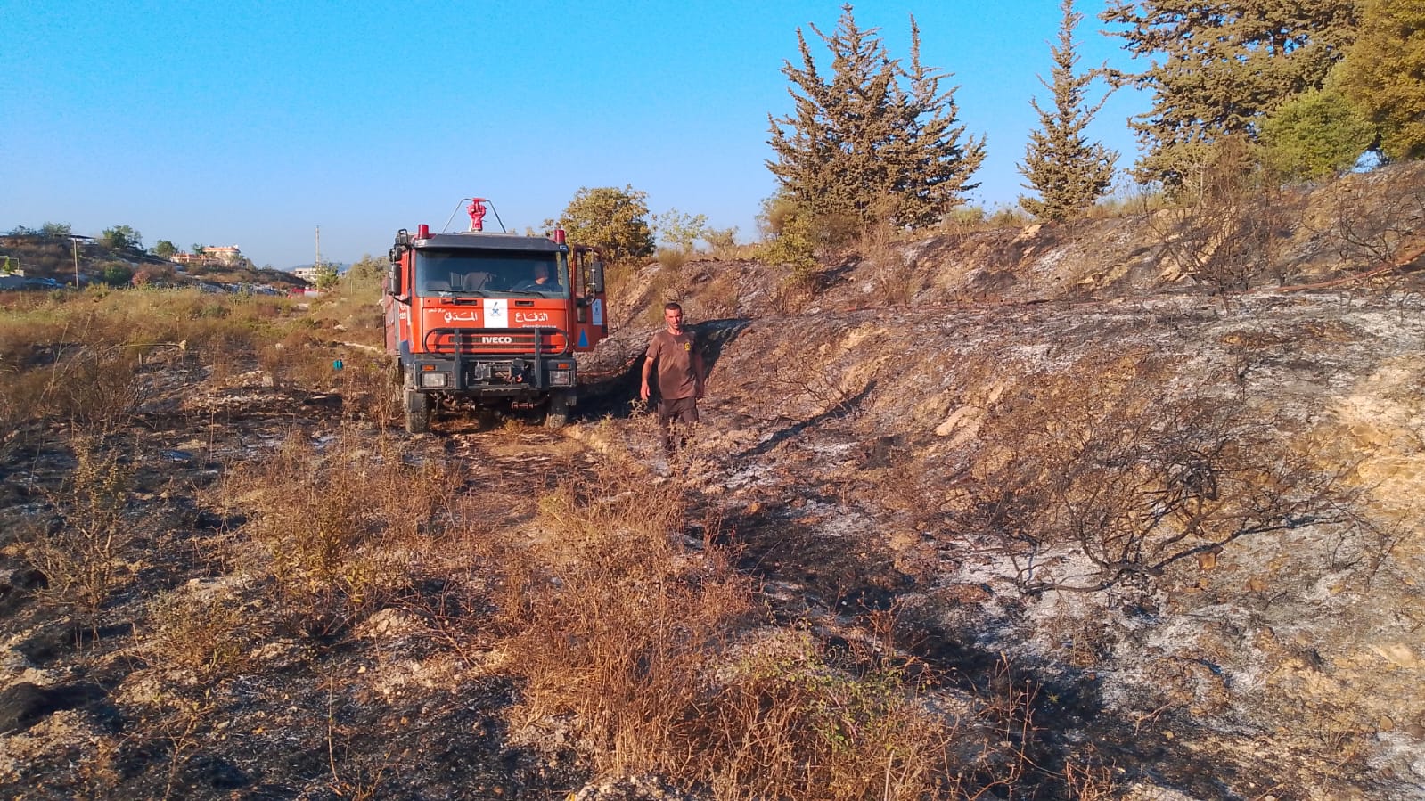 الدفاع المدني يخمد حريق وادي المعنية وشكر وتقدير من الاهالي للجهود والتضحيات