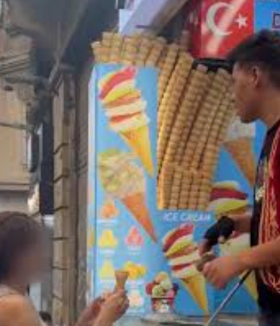 وآثار مقطع فيديو من حي بيوغلو وسط إسطنبول ضجة واسعة بعدما ظهر فيه بائع بوظة “يتحرّش” بسائحة أجنبية خلال تقديمه المثلجات على طريقته المعروفة باللعب بالمخروط، حيث قام بملامسة جسدها ووضع يدها في مكان اعتبر غير لائق، ما عد سلوكاً صادماً ومهيناً.