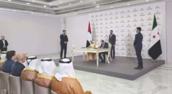 وحضر حفل التوقيع الرئيس أحمد الشرع، ورئيس الهيئة العامة للمنافذ والمعابر البرية والبحرية قتيبة بدوي، استكمالًا لإجراءات “مذكرة التفاهم المتعلقة بالموضوع، والتي وقعتها الهيئة العامة للمنافذ البرية والبحرية السورية مع شركة موانئ دبي العالمية في شهر (مايو/ أيار الماضي” بحسب “سانا”.