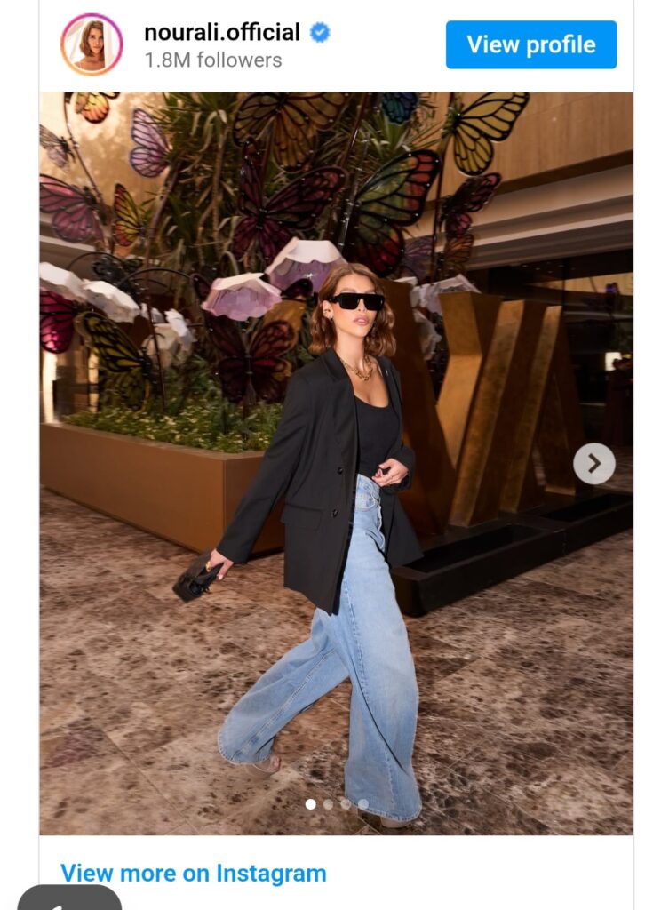 وفي إطلالة تجمع بين البساطة والستايل الجريء، لفتت نور العلي الأنظار بنظارات شمسية ضخمة أعادتنا إلى حقبة الألفينيات، وأكدت أن الأكسسوار وحده قادر على تحويل لوك كامل.