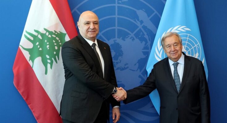 نوّه الأمين العام للأمم المتحدة أنطونيو غوتيريش بالدور الذي لعبه رئيس الجمهورية جوزاف عون والحكومة اللبنانية في تثبيت مبدأ أن يكون الجيش اللبناني القوة المسلحة الشرعية الوحيدة في البلاد، رغم ما تواجهه الدولة من صعوبات.