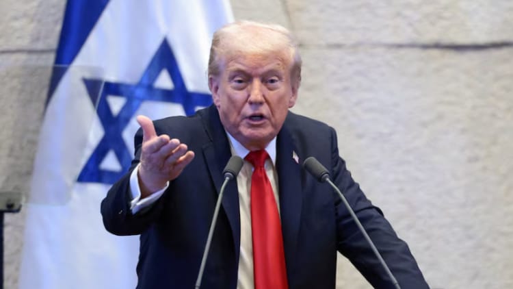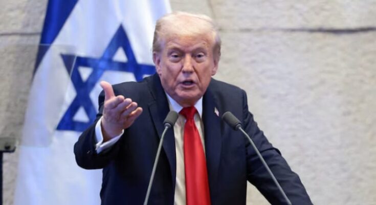 وفي كلمة له أمام الكنيست الإسرائيلي تطرق الرئيس الأميركي إلى الملف اللبناني قائلا: “في لبنان خنجر حزب الله الذي كان مصلتا على إسرائيل دُمر”.