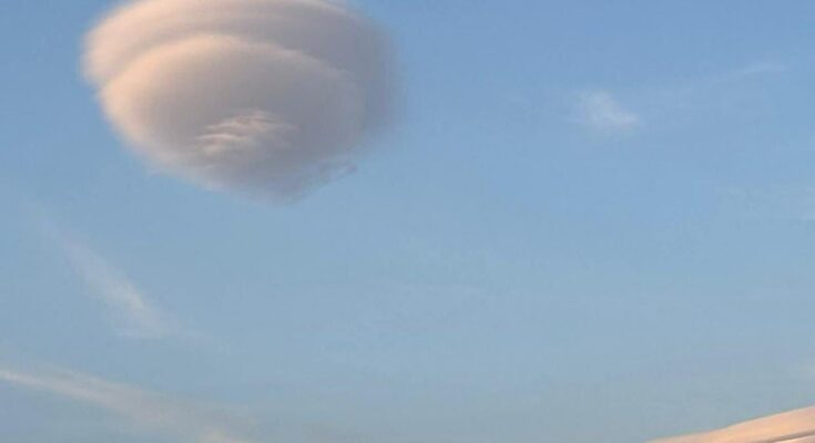 شهدت بلدة عيحا في قضاء راشيا مساء اليوم ظاهرة جوية لافتة، تمثّلت بظهور غيمة غريبة الشكل بدت كأنها صحن فضائي يحلّق في السماء.