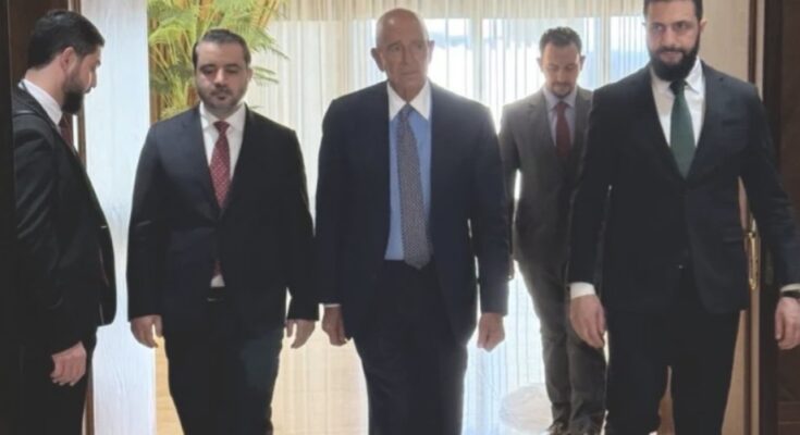 كتب المبعوث الأميركي الخاص إلى سوريا، توم براك، في منشور على حسابه على منصة إكس، أنّه التقى في دمشق، نيابةً عن الرئيس الأميركي دونالد ترامب ووزير الخارجية ماركو روبيو، الرئيس السوري أحمد الشرع ووزير الخارجية أسعد الشيباني، حيث جرى البحث في التطورات الأخيرة في مدينة حلب والمسار العام للمرحلة الانتقالية في سوريا.