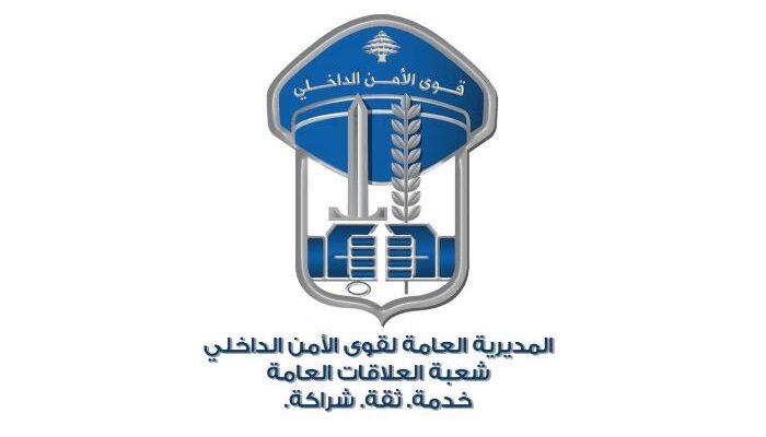 صــدر عــن المديريّـــة العامّــة لقــوى الأمــن الدّاخلـــي – شعبــة العلاقـــات العامّـــــــة البلاغ التّالي: