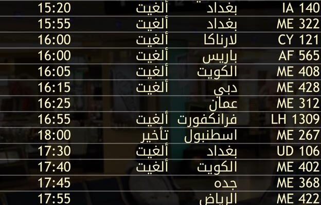 مصادر مطلعة أفادت أن حركة الطيران تتأثر بشكل كبير، ومن المتوقع أن تواصل الشركات مراجعة جداولها وقد تتوسع الإلغاءات في الساعات القادمة.