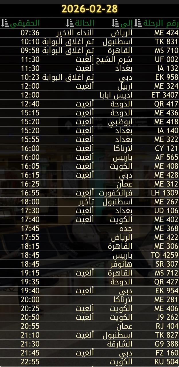 التوصية: ينصح المسافرون بالتحقق مباشرة مع شركاتهم الجوية أو عبر موقع المطار للحصول على تفاصيل الرحلات قبل التوجه إلى المطار.
