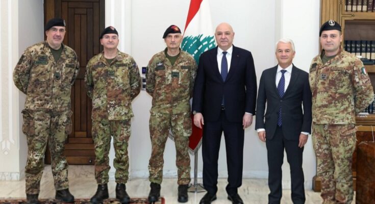 وفي سياق متصل، رحّب عون برغبة إيطاليا في الإبقاء على وحدات من قواتها ضمن إطار “اليونيفيل” في جنوب لبنان بعد انتهاء مهلة الانسحاب المحددة في نهاية عام 2027، مشيرًا إلى أنّه سيتم في حينه الاتفاق على الصيغة المناسبة التي تنظم بقاء هذه القوات وسواها من قوات الدول المشاركة، والتي أبدت استعدادها للاستمرار في دعم الجيش اللبناني ومساندته في مهمته لحفظ الاستقرار في الجنوب.